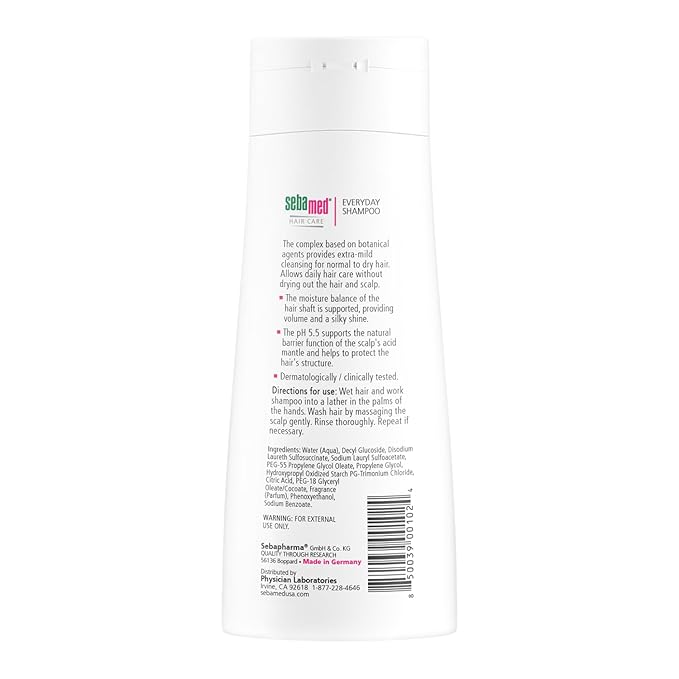 - Light and Pleasant Fragrance: Sebamed Everyday Shampoo is suitable for both men and women. Experience a refreshing, delicate fragrance with each wash. The elegant scent is crafted to uplift your senses, leaving you feeling rejuvenated both physically and mentally, enhancing every wash into a moment of relaxation.