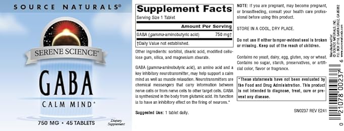 Source Naturals Serene Science GABA, for a Calm Mind, 750mg - 45 Tablets