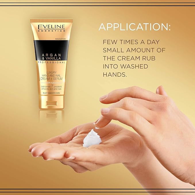 Eveline Professional Luxury Hands & Nails Cream-Serum Argan & Vanilla, 3.38 Fluid Ounce