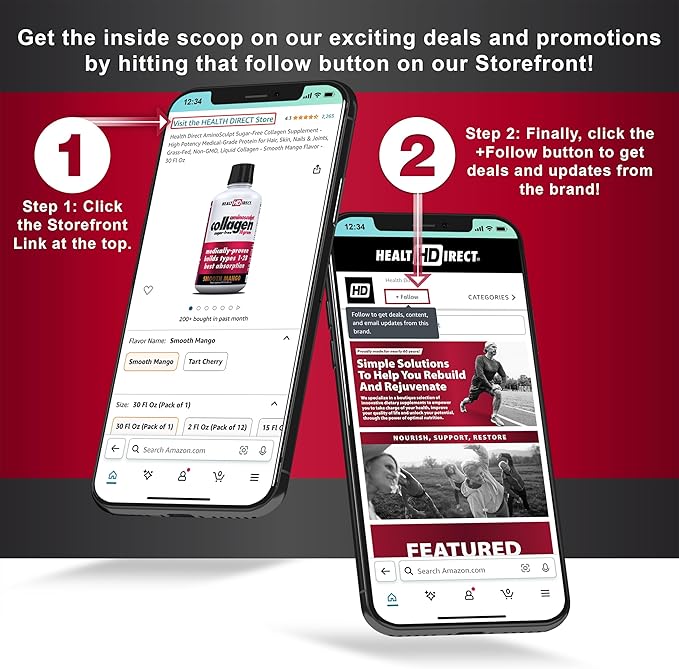 HEALTH DIRECT AminoSculpt Sugar-Free Collagen Supplement - High Potency Medical-Grade Protein for Hair, Skin, Nails & Joints, Grass-Fed, Non-GMO, Liquid Collagen - Smooth Mango - 30 Fl Oz