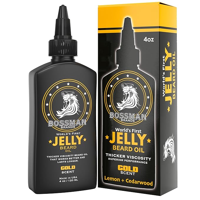 Bossman Jelly Beard Oil for Men (4 oz, Gold Scent) – Softens, Moisturizes & Conditions with Natural Ingredients