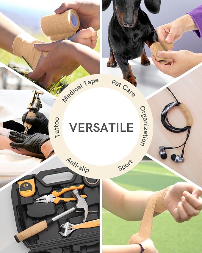 FriCARE Self Adhesive Bandage Wrap, Medical Tape in First Aid Kit, Cohesive Bandages for Wounds Sport Vet, 2 Inches X 5 Yards 6 Rolls, Tan