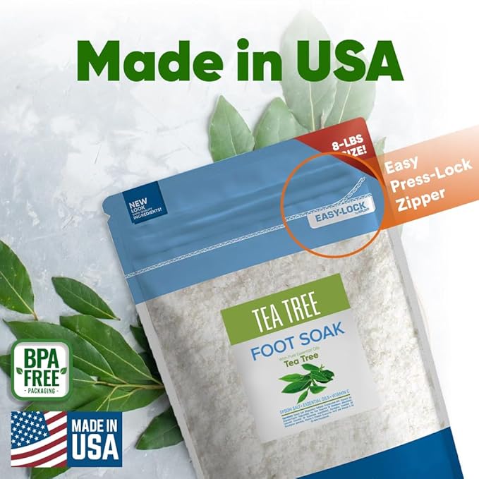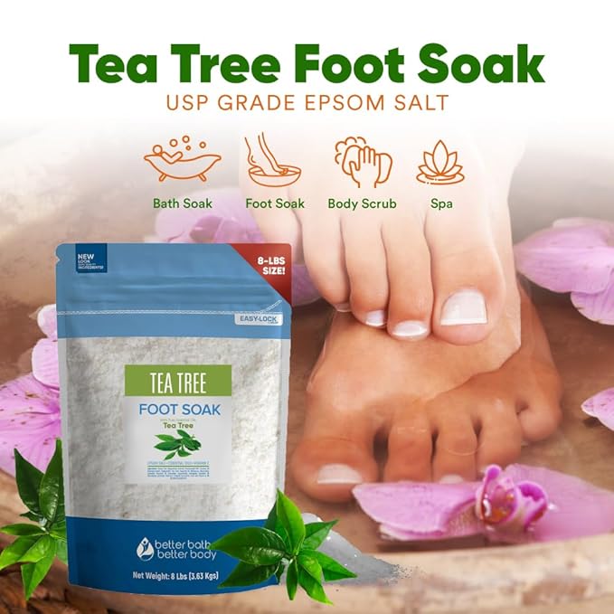 - 8-Lbs Tea Tree Foot Soak: Made With USP Grade Epsom Salt, Pure Essential Oils, & Vitamin C Crystals