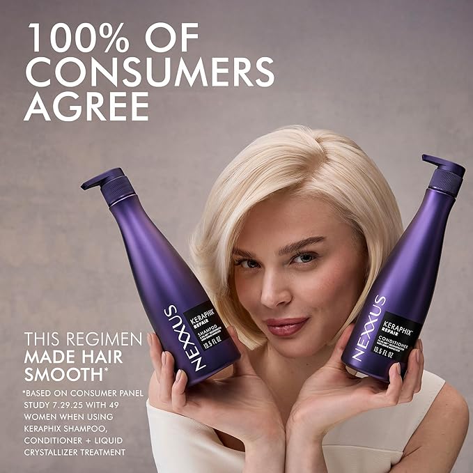 - CONSUMER-VALIDATED:100% of consumers agree this regimen made hair smooth Based on consumer panel study 7/29/25 with 49 women when using Keraphix Shampoo, Conditioner + Liquid Crystallizer treatment