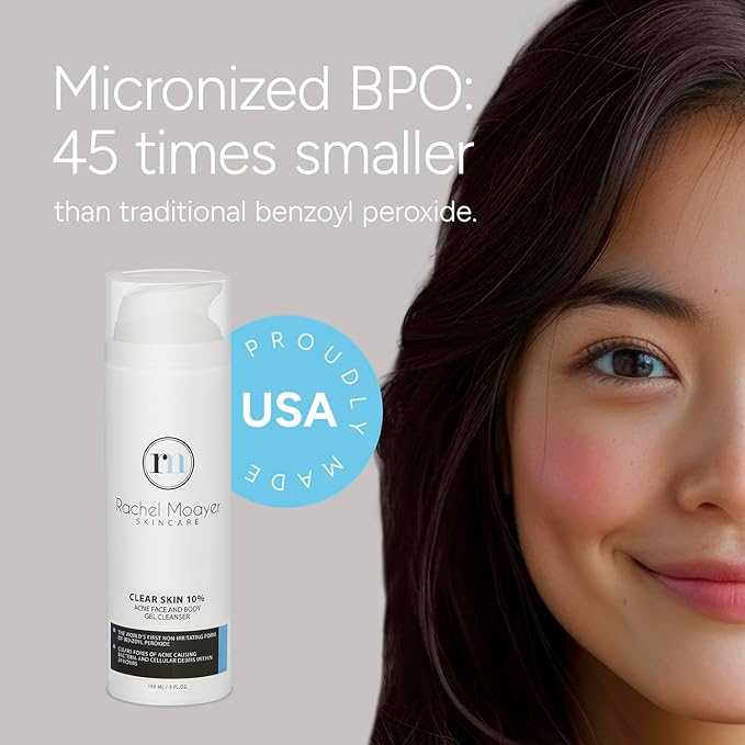 Rachel Moayer Clear Acne Face Wash & Acne Body Wash Gel Cleanser with 10% Benzoyl Peroxide, Ideal for Back Acne, Clear and Prevent Breakouts with Body Wash for Acne Prone Skin, Non-Irritating Formula