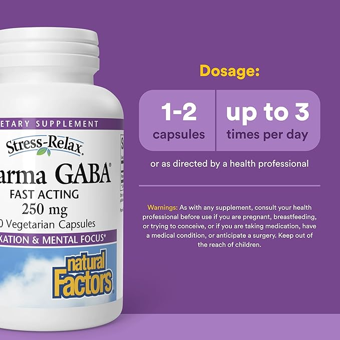 Natural Factors Pharma GABA - Dietary Supplement Supports Calm Sleep & Sleep Quality - Natural, Fast-Working Supplement Aids Focus & Brain Health - 60 Vegetarian Capsules (60 Servings)
