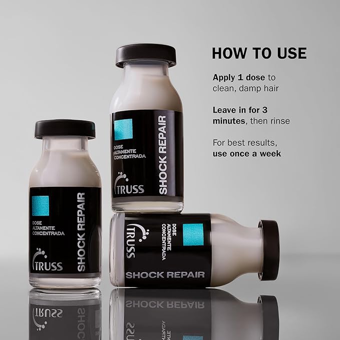TRUSS Repairing Hair Serum - Shock Repair Hair Care for Damaged Strands - Highly Concentrated for Split End Repair & Protection - Weekly Reconstructing Treatment for Hydration & Strength (4 Ampoules)