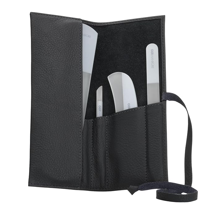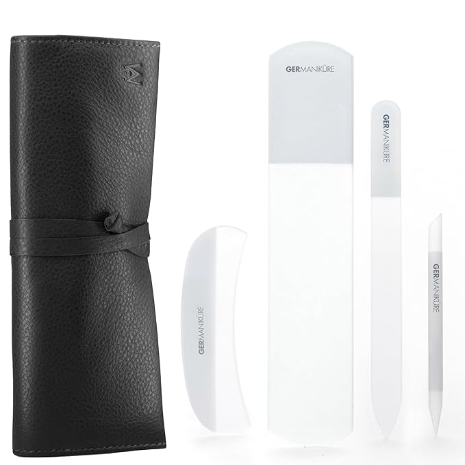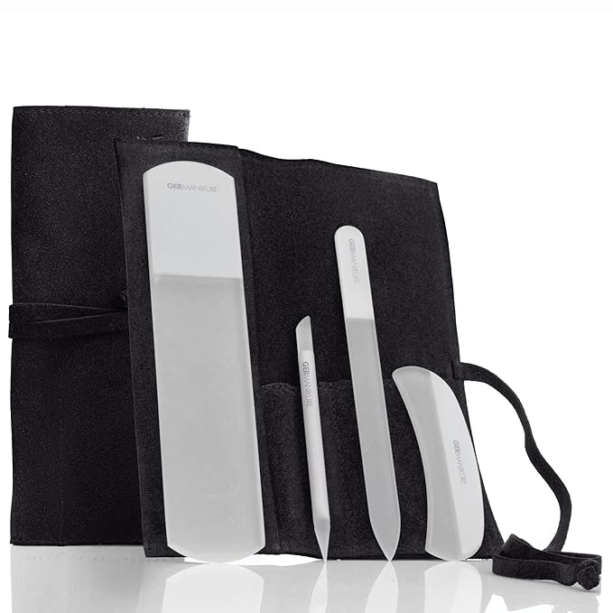 4pcs Manicure Set Genuine Czech Crystal Gray Glass Nail File Moon File Manicure Stick Pedicure Foot Care Bar in Black Leather by GERmanikure