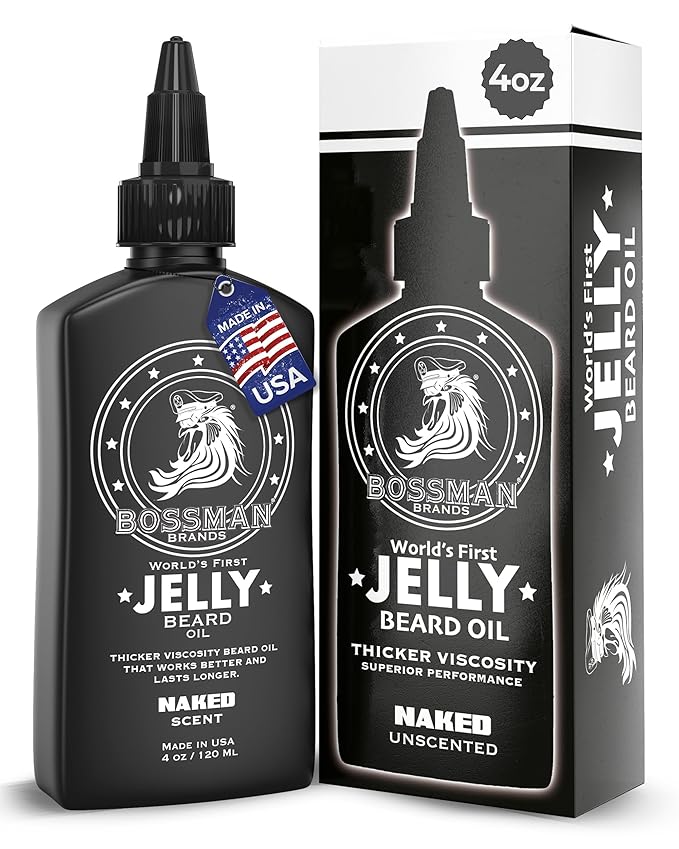 Bossman Jelly Beard Oil for Men (4 oz, Naked - Unscented) – Softens, Moisturizes & Conditions with Natural Ingredients
