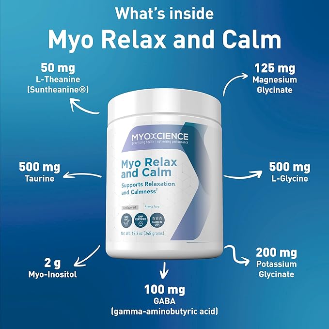 MYOXCIENCE Myo Relax & Calm | Myo-Inositol, L-Theanine, Taurine, Magnesium & GABA | Supports Sleep, Neurotransmitter & Hormone Support (Unflavored) (60 Servings)