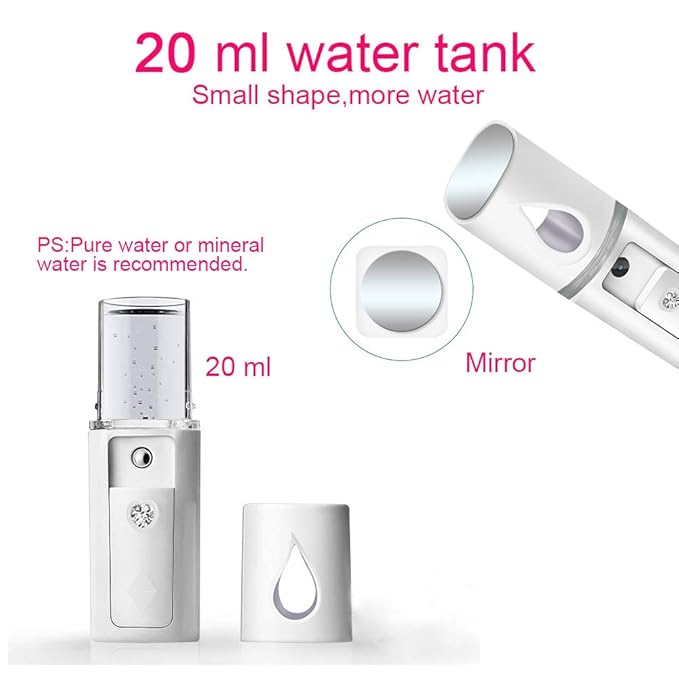- Handy and fashionable cool mist facial sprayer, easy to carry, convenient for you to moisturize skin anywhere anytime, making facial skin elastic and tender.