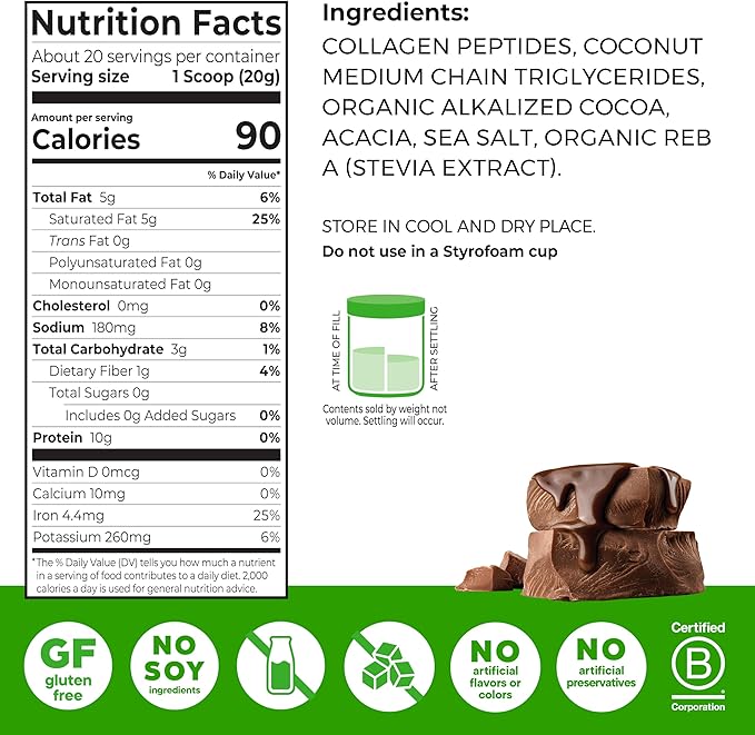 - WHAT TO EXPECT: Includes 1 (0.88 pound) Orgain Chocolate Keto Collagen Protein Powder with MCT oil. Each serving (1 Scoop) provides 90 Calories.
