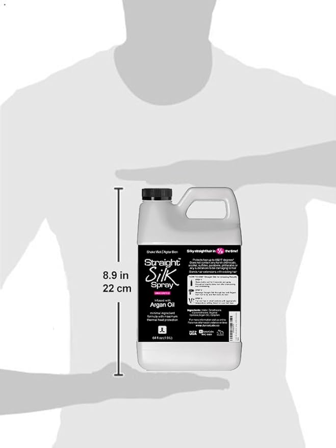 Straight Silk Spray with Moroccan Argan Oil | Hair Straightening Protector & Detangler | Alcohol-Free | Heat Protectant up to 450°F | Flat-Iron | Blow-Dry | Unscented | Hair Spray | MADE IN USA (64oz)