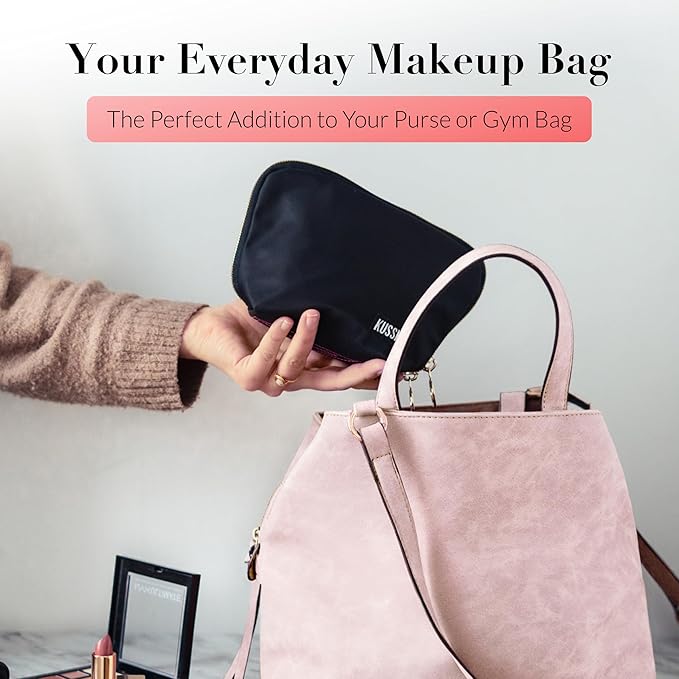 KUSSHI Washable Travel Makeup Bag for Purse (Everyday, Satin Black/Red)