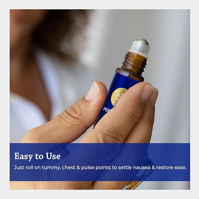 Silk Road Organic Peppermint Essential Oil Roll On, USDA Certified, for Nausea Morning Sickness, Focus & Head Tension - 10 ml Aromatherapy Roller