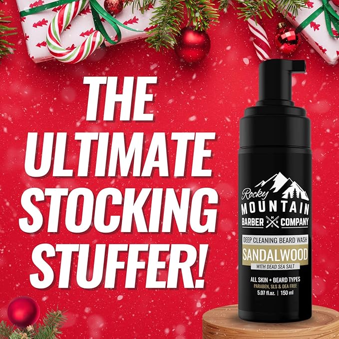Rocky Mountain Barber Company Foaming Sandalwood Beard Wash – With Sandalwood Essential Oil, Vitamin B5 & Dead Sea Salt - 5 oz