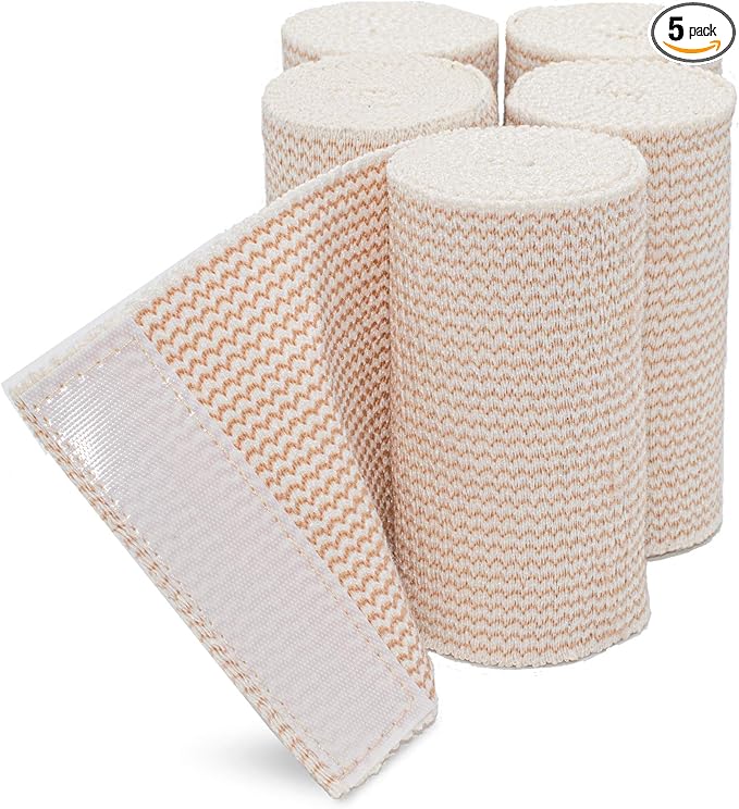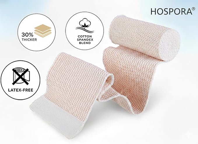 Hospora Thick Latex-Free Compression Cotton Elastic Bandage (3 inches, 5 Rolls)
