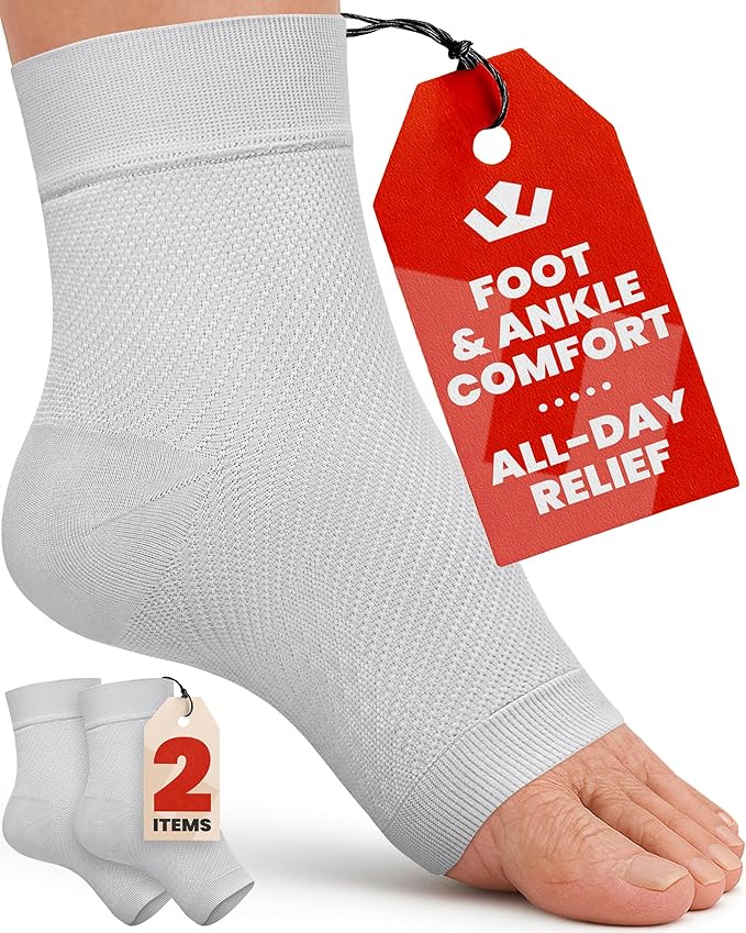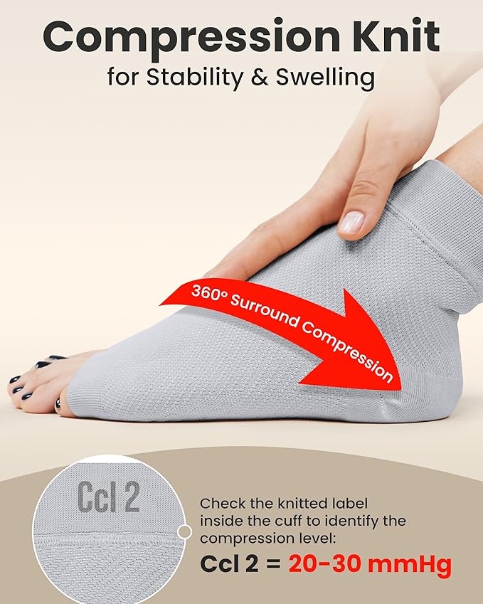 - ๐๐ป๐ธ๐น๐ฒ ๐ฃ๐ฎ๐ถ๐ป ๐ฅ๐ฒ๐น๐ถ๐ฒ๐ณ - Wear these ankle compression sleeves under your shoes and socks for pain relief in your heels caused by plantar fasciitis, injury, sprained ankle, Achilles tendonitis, edema, heel spurs, varicose veins, fallen arches, lymphedema, swollen ankles. Our toeless ankle sleeve supports your leg all day
