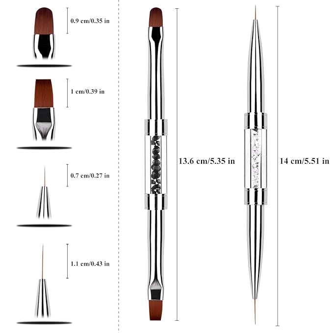2Pcs Dual-ended Nail Design Brushes Rhinestone Handle UV Gel Nail Brush Set Professional Nail Art Tools