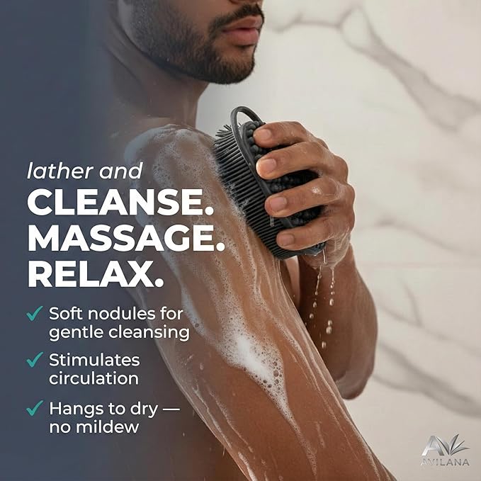 Avilana Premium Silicone Body Scrubber - 8 Years Trusted Since 2017 - SGS Certified Food Grade Dual Sided Bath Brush, Quick-Dry Exfoliating Loofah Alternative, Massage Brush Sensitive Skin Women Men