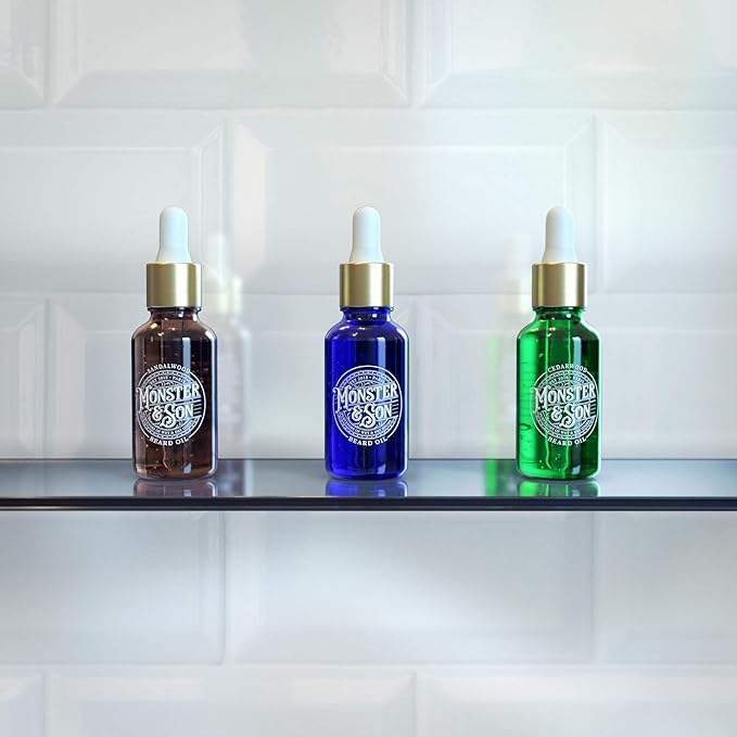 Monster&Son Cold Pressed Beard Oil Variety Pack x3 - Helps to Hydrate, Style and Promote New Hair Growth - Rich in Vitamins & Minerals - Jojoba, Argan & Meadowfoam Oils - Ideal Gift for Bearded Men