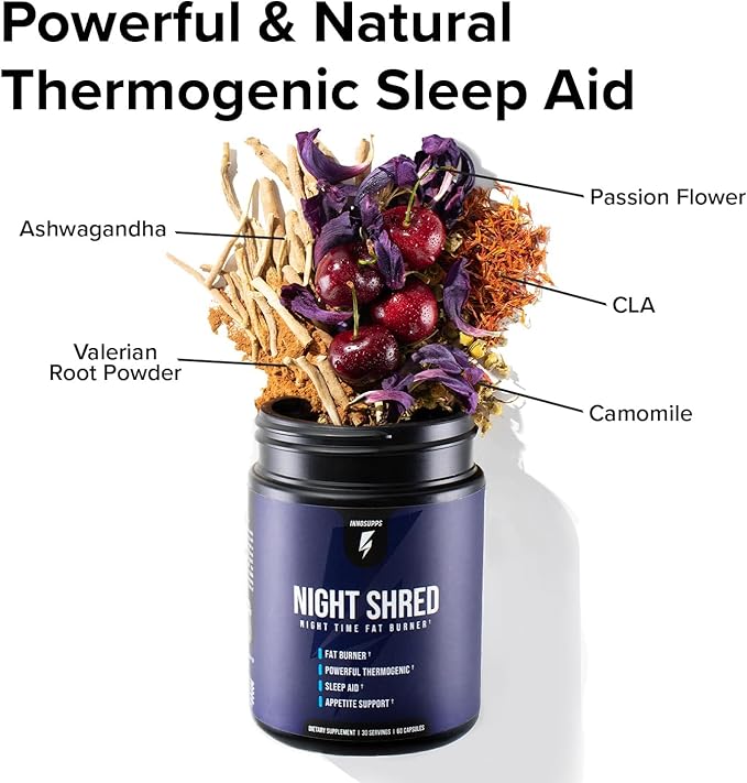 InnoSupps Night Shred Fat Burner and Natural Sleep Support | Ashwaganda, 5-HTP, CLA, Melatonin | Appetite Suppressant | Weight Loss Support Nighttime Fat Burning (60 Vegetarian Capsules)