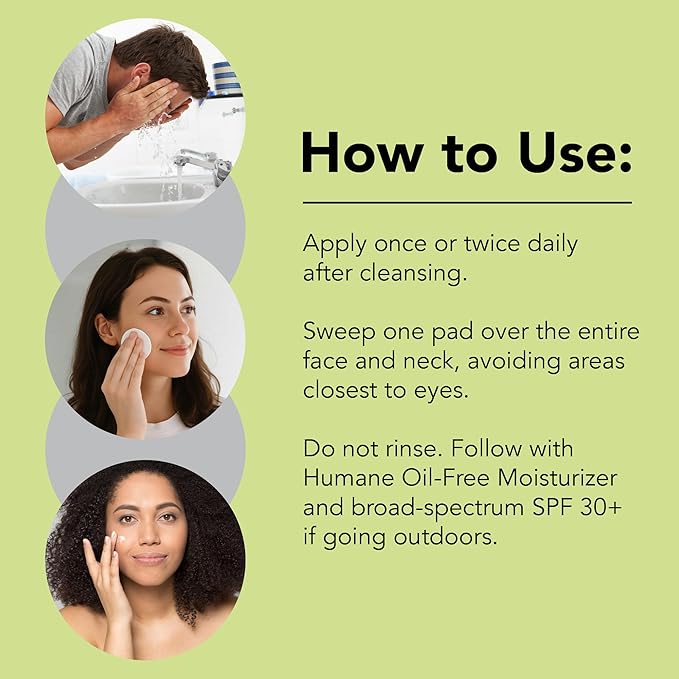 - Humane Clarifying Toner Pads: Effective and super-convenient, these textured Clarifying Toner Treatment Pads come presoaked in a breakout-fighting blend of 2% salicylic acid (an oil-soluble BHA, or beta hydroxy acid) and antioxidant-rich green tea extract. Pre-moistened textured pads work to deep-clean, exfoliate, and brighten skin in one easy step. Dermatologist-tested. Contains 60 textured pads.