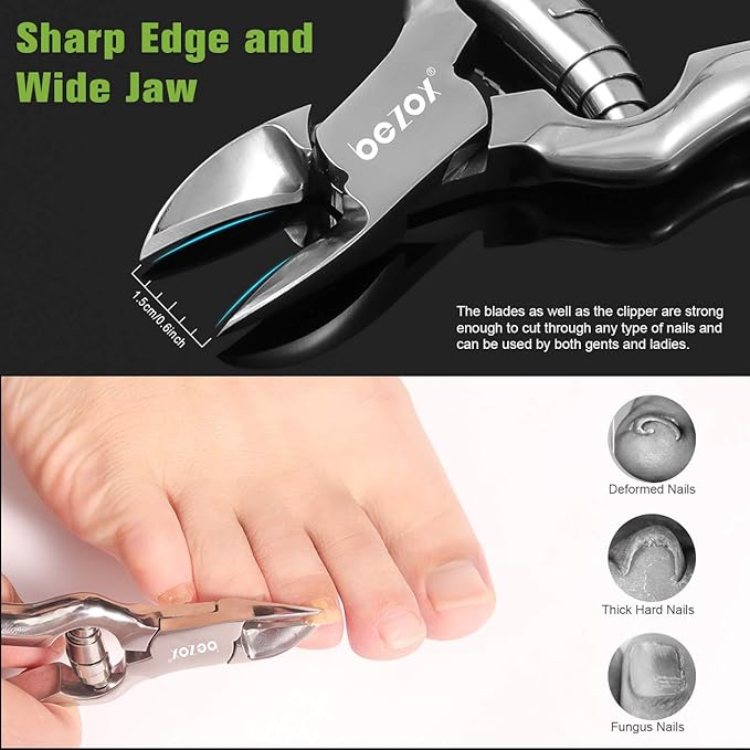 - 【EASY USE & CLEAN】 The BEZOX nail clippers are easy as a breeze to use and clip ingrown thick nails with fungal infections. 100% made of steel and can easily be cleaned or disinfected without intrinsic corrosion.