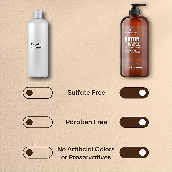 Botanic Hearth Biotin Shampoo With 100% Pure Ginger Oil | Sulfate & Paraben | Free | Enriched With Turmeric Extract, Argan Oil & Vitamin E | For All Hair Types | 16 Fl. Oz
