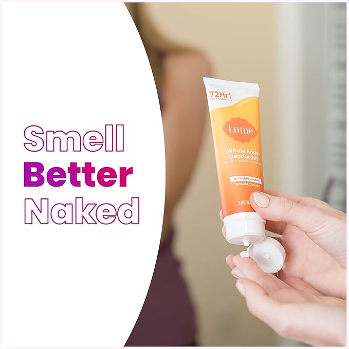 Lume Whole Body Deodorant - Invisible Cream Tube - 72 Hour Odor Control - Aluminum Free, Baking Soda Free, Skin Safe - 3.0 ounce (Toasted Coconut)