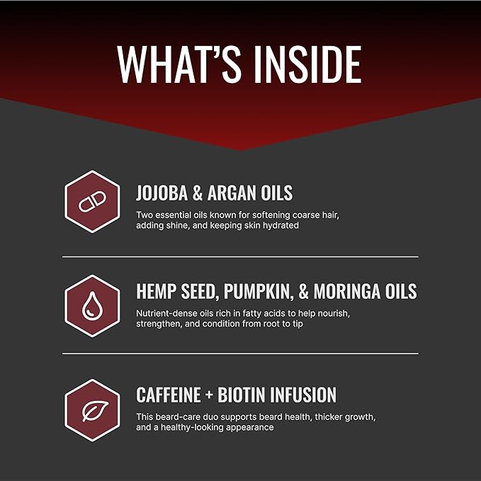 - A Blend Like No Other - Moringa Oil, Hemp Seed Oil, and Biotin provide total beard maintenance. This combination of ingredients supports strong hair growth and eliminates breakage.