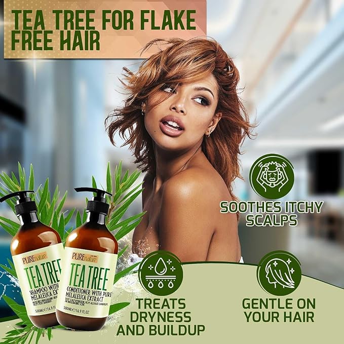 - STUNNING SHINE: People love how this anti itch shampoo and conditioner banishes flakes and dandruff to leave them with gorgeous hair that demands attention. Pure Nature Lux Spa’s shampoo and conditioner set tea tree formula gives you perfect looking hair that’s free of flakes with stunning shine