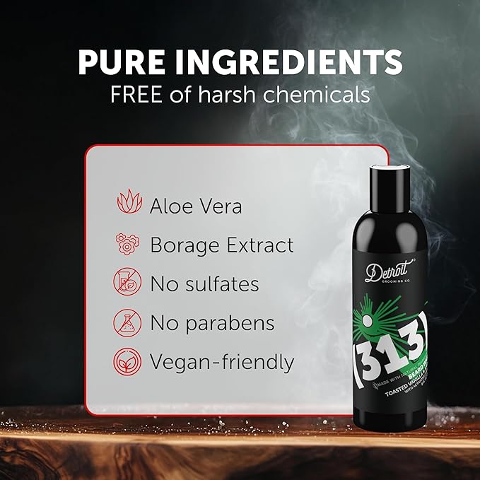 Detroit Grooming Co. Beard Wash - Men's Beard Shampoo - Deeply Cleanses & Refreshes Beards - Aloe Vera with Essential Oils - Beard & Mustache Cleanser - Toasted Vanilla & Amber Scent - 313-8oz