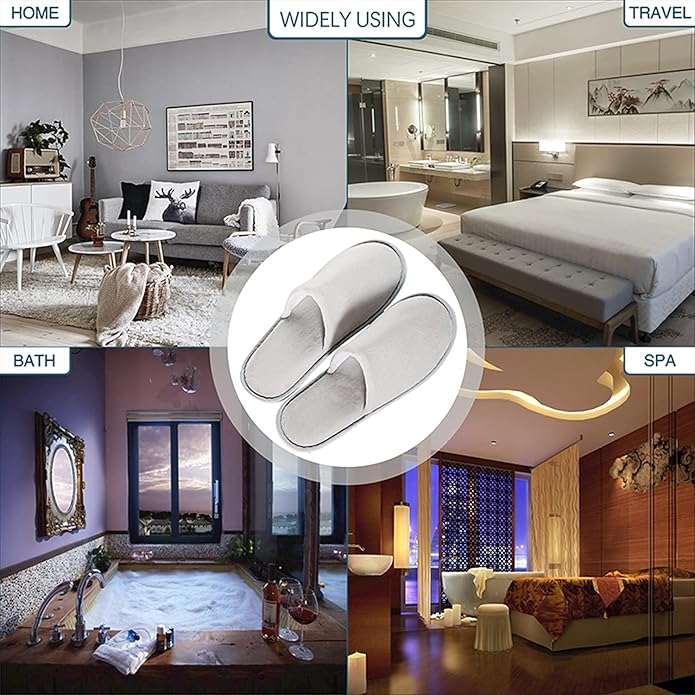 - 🔶 WIDELY USED: It is a pair of men's and women's slippers. Each pair of slippers has its own packaging bag. It is an ideal choice for hotel, spa, conference center, motel, air travel, family slippers and other commercial purposes. Suitable for Airbnb guests, vacation rentals, flights, travel, hotels, restaurants, family gatherings, birthday parties, parties, wedding parties, etc.
