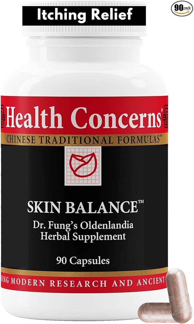 Health Concerns Skin Balance – Herbal Supplement for Skin Support, Itching Relief, & Circulation – Chinese Herbal Supplements for Men & Women – Skullcap, Dong Quai, Coptis Root - 90 Capsules