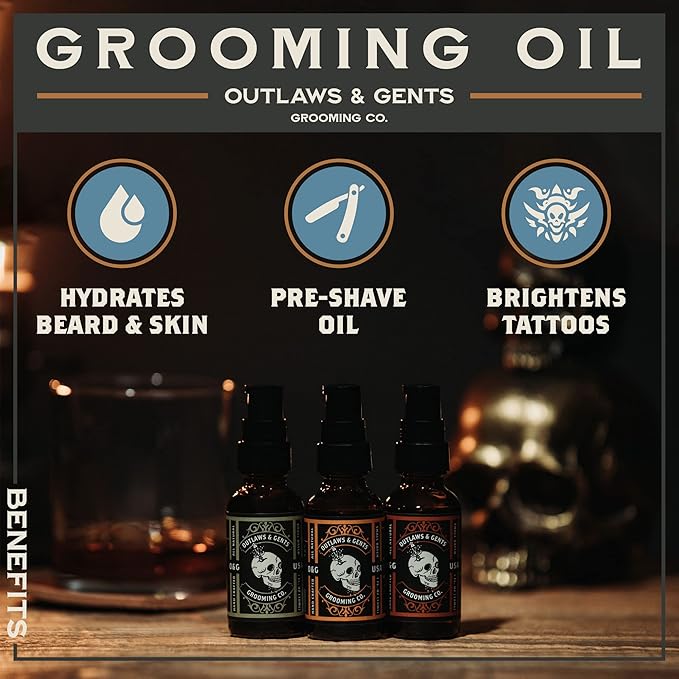 - PREMIUM INGREDIENTS - Our Outlaws & Gents Grooming Co beard oil is made with high-quality, natural ingredients that will leave your beard feeling soft, healthy, and nourished.