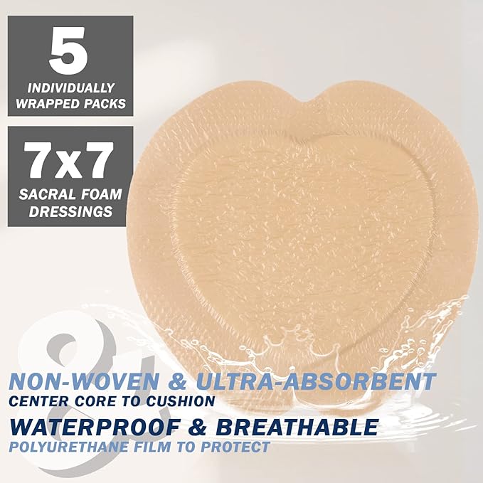 - ✅HIGHLY ABSORBENT, CUSHION AND PROTECT– The Sacrum Foam Dressings effectively manage temperature and humidity to promote healing. The multi-layer center core cushions and protects wound site, absorbs excess drainage and exudate, while allowing skin to breathe, thus reduce maceration around the wound edges.