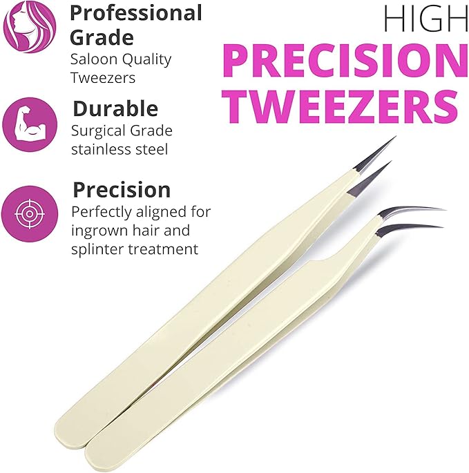SIVOTE Lash Tweezers for Eyelash Extensions, Hand Calibrated Straight & Curved Tip, Pack of 2, Vanilla
