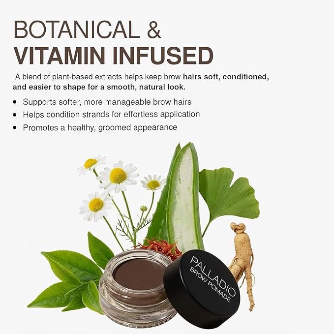 - LINE, FILL, SHAPE AND SET: This multitasking buildable matte brow pomade is vegan and infused with botanical ingredients like aloe and safflower seed oil. Combine with the Palladio Definer Micro Pencil, for precise fine hairlike strokes, and Brow Powder to fill in brows.