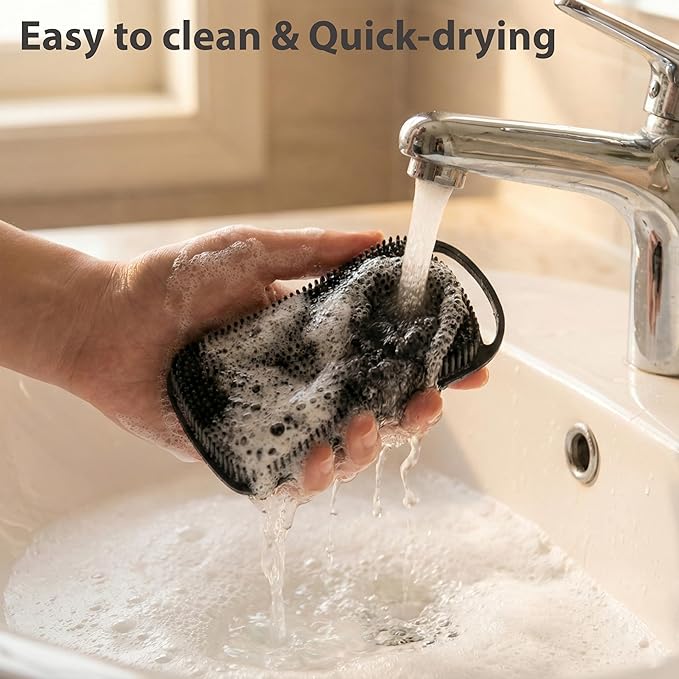 - Suitable for All Skin Types: Being made of food-grade silicone, the scrubber is safe and eco-friendly to use, especially with sensitive skin. The flexible brush body can better fit the scalp or your body. The shower scrubber can be used in hot water and is dish-washer safe.