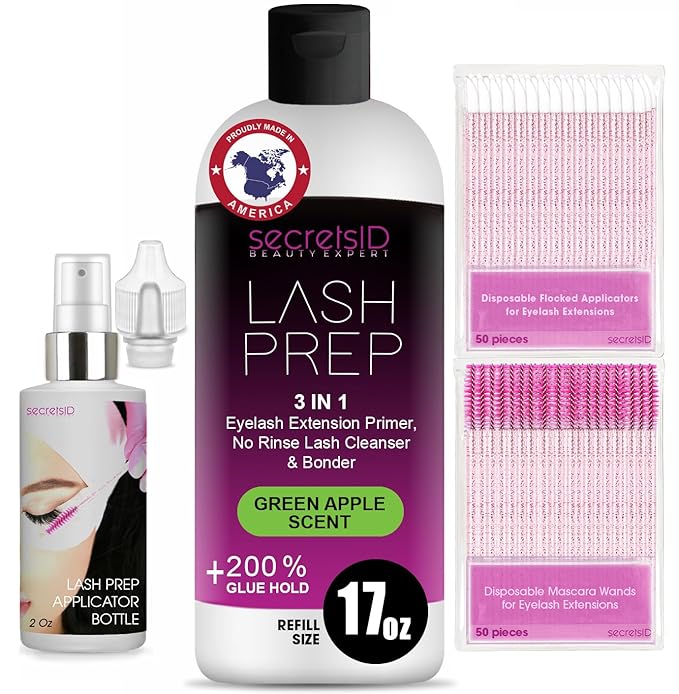 - π©πππ¨π π£πππ: Secret ID's bulk eyelash extension primer includes a 500-ml bottle, a 60-ml spray bottle, and a dropper plug with a screw overcap. Utilize the 50 disposable mascara brushes and 50 lint-free applicators provided for gentle cleaning and precise application. Enhance your lash extension services with our comprehensive primer for eyelashes package, which ensures convenience and excellent results.