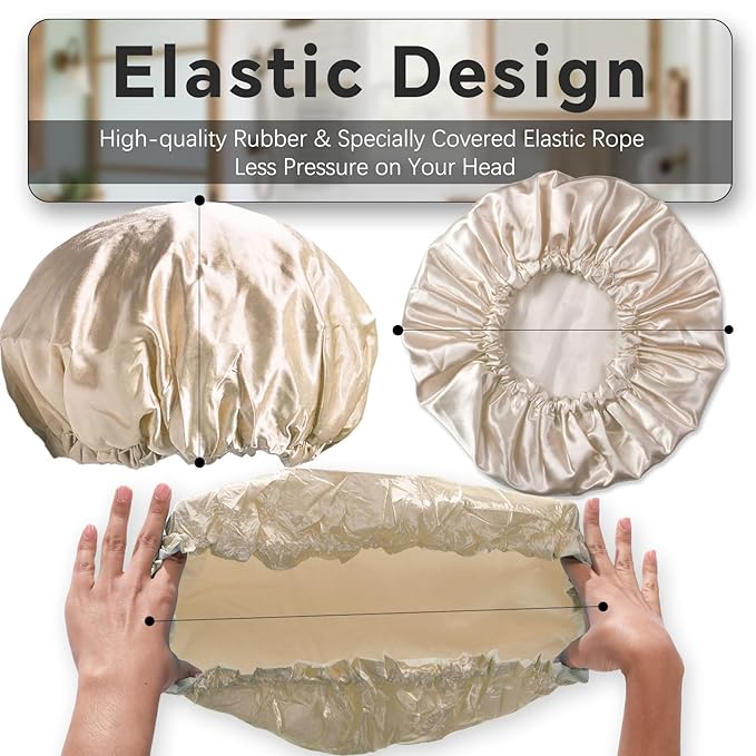 - PROTECT YOUR MORNING BLOWOUT SAVE YOUR EXPENSIVE HAIRSTYLE: Humidity is the enemy of a perfect blowout. Our shower caps for women feature a premium double layer shield (Polyester + EVA) that acts like a fortress against steam and splash. Step out of the shower with your hair as bouncy and dry as when you walked in.