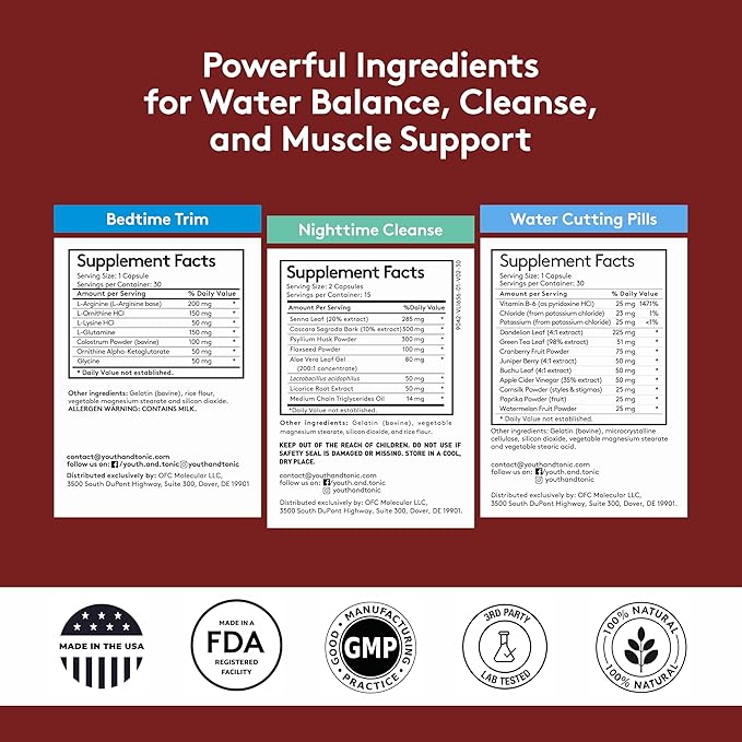 - Sculpt Lean Cleanse | This 3-pack works together to support water weight reduction, bloating relief, and a toned physique. Combining Bedtime Trim, Water Cutting Pills, and Nighttime Cleanse, it helps you feel lighter, more energized, and leaner while supporting metabolism and overall body detox