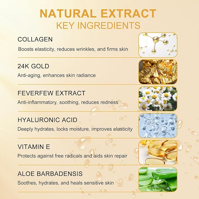 - [Effective Eye Treatment] - LAVONE eye mask rich in 24K gold, hyaluronic acid, collagen and fever few natural extracts. Eye patch for dark circles and puffiness. Enhances skin for a luminous bare-faced glow, visibly Anti-aging, hydrates, nourishes skin. Improves texture, reduce wrinkles, eye bags and fine lines. Leave skin smooth, soft, refresh and grow. Keep your eyes young!
