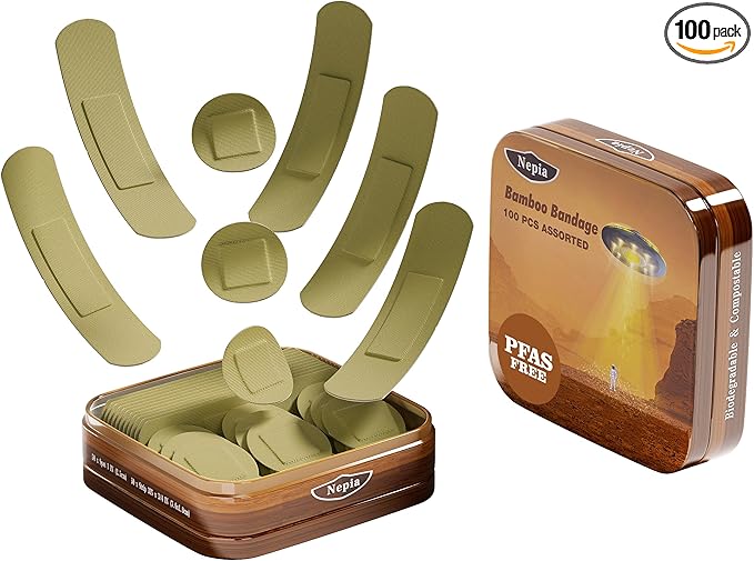 - Family-Ready Bamboo Bandage Kit: 100 hypoallergenic bandages in 2 sizes (small spots to 3-inch scrapes) with a Iron Box. Stock first aid kits, diaper bags, and hiking packs with compostable wound care that works anywhere