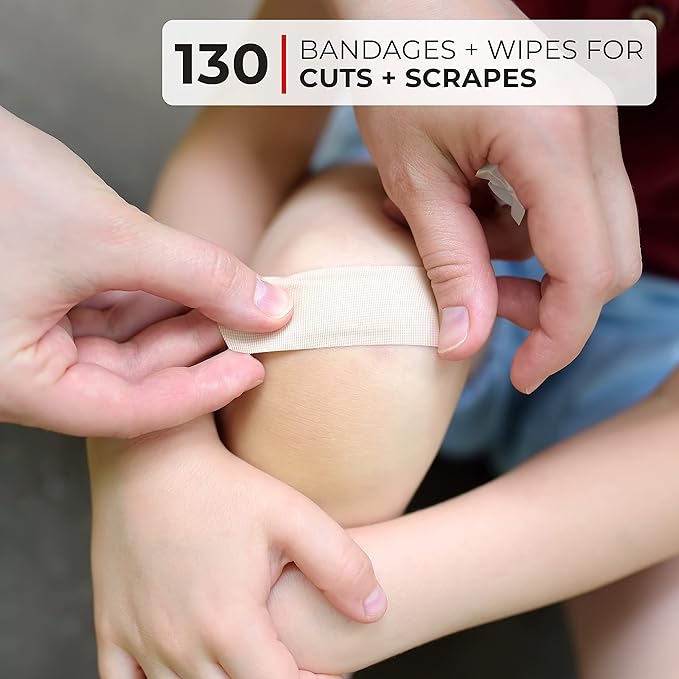 - Complete Kit: Safety essentials stay put in a durable rip-stop nylon and vinyl fabric case. Extensive inner pockets keep contents stored neatly between uses, making it a professional first aid kit and a portable first aid kit for any situation.