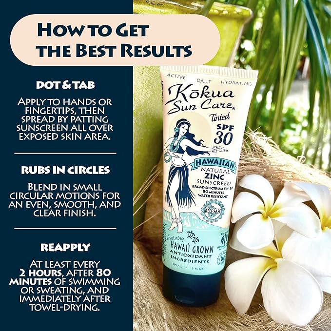 Kokua Sun Care Hawaiian Reef Safe SPF 30 | Zinc Oxide | Tinted Mineral for Face & Body | Sun Protection | Water Resistant | Chemical Free | Natural Ingredients