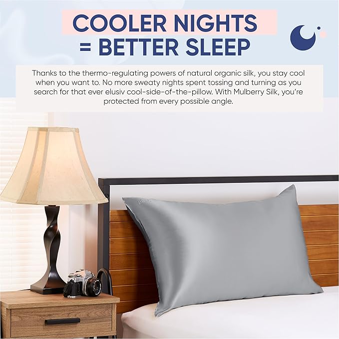 - BETTER & COOLER SLEEP: The temperature regulating properties of the Blissy silk pillowcase allow you to keep cool at all times during the night without the discomfort associated with fluctuating temperature and the constant tossing and turning for a restful night sleep.
