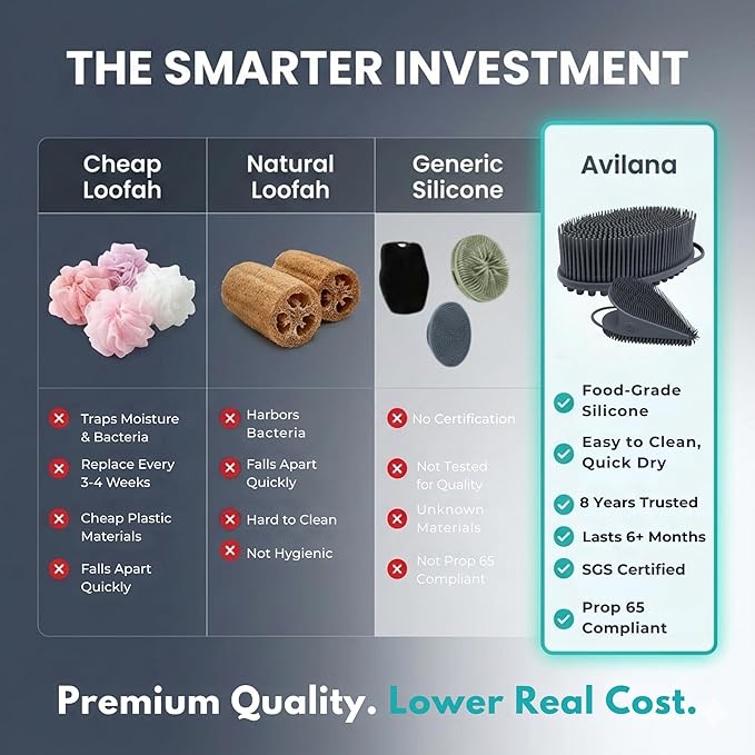 Avilana Premium Body Scrubber and Face Brush Set - 8 Years Trusted Since 2017 - SGS Certified Silicone 2-in-1 Shower Kit, Dual Sided Gentle Exfoliating Loofah Alternative Sensitive Skin Women Men Gift