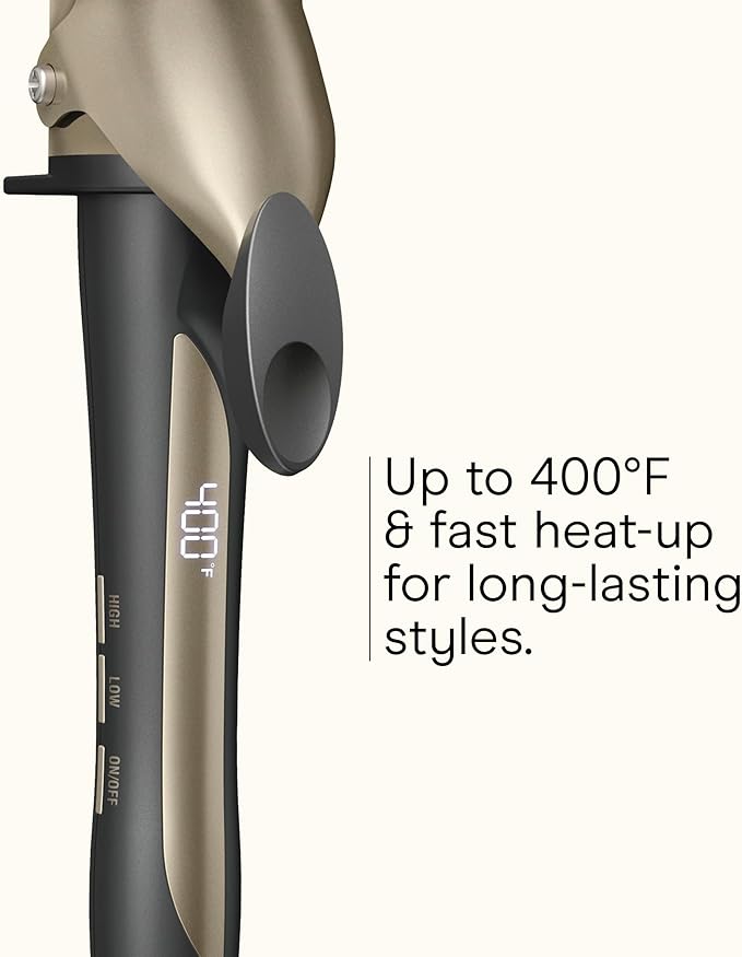 - TURN UP THE HEAT: This hair curling iron has a true ceramic heater that heats up in 30 seconds and maintains the heat level. With 5 heat settings and 400°F high heat, choose the right setting for your hair.